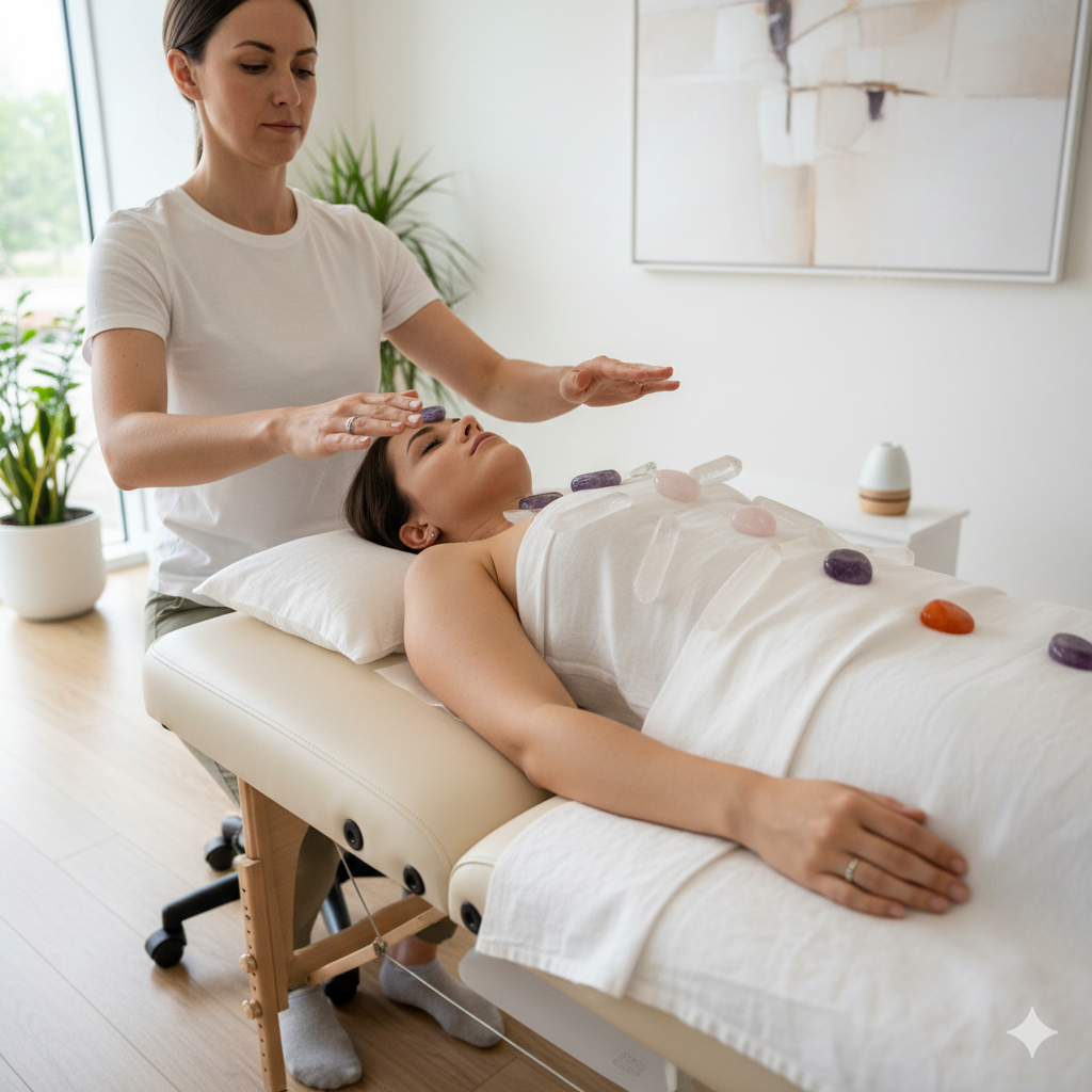 • Integrating complementary healing modalities such as crystal medicine, sound therapy, color therapy, and mediumship